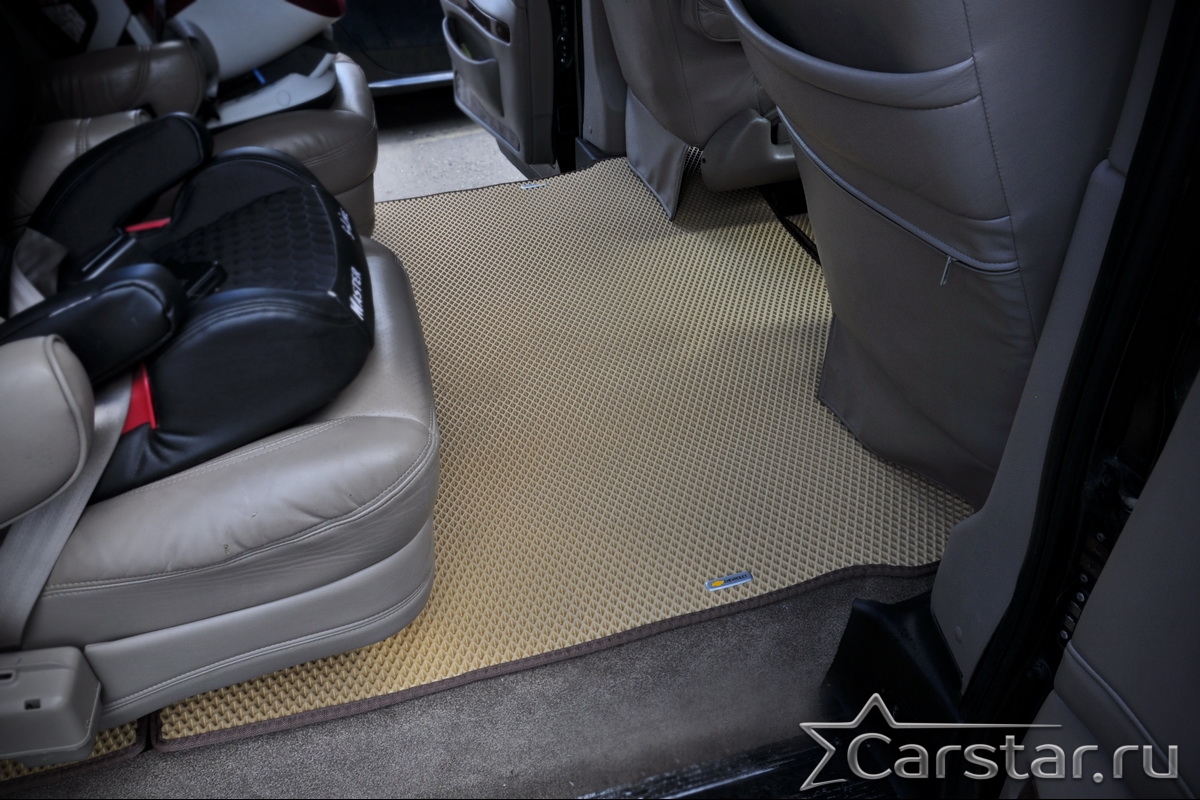 Толщина ковриков EVA составляет 10-12 мм. Глубина ячеек 7-8 мм. Такая толщина ковриков позволяет им служить довольно долго, не протираясь до 3 лет. А благодаря такой глубине ячеек коврик EVA площадью 1 кв.м. способен захватить около 3,5 л жидкости, сохраняя в чистоте вашу обувь и обивку салона.