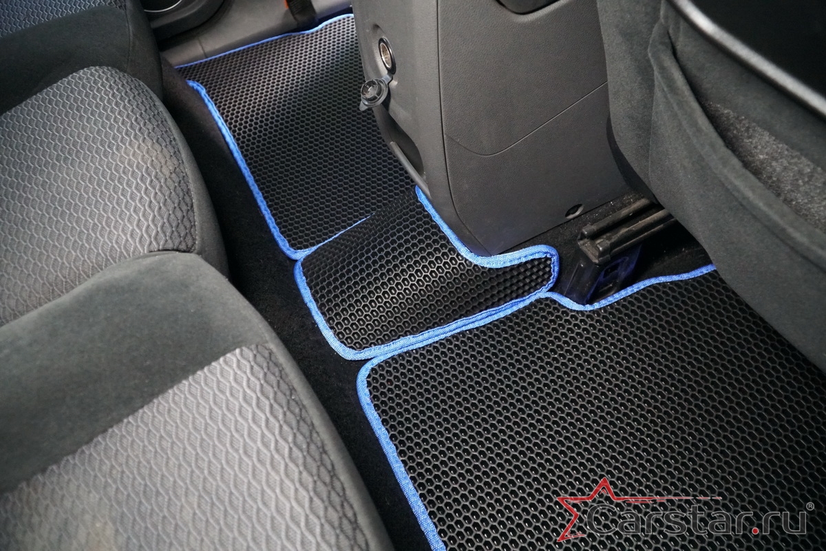 Толщина ковриков EVA составляет 10-12 мм. Глубина ячеек 7-8 мм. Такая толщина ковриков позволяет им служить довольно долго, не протираясь до 3 лет. А благодаря такой глубине ячеек коврик EVA площадью 1 кв.м. способен захватить около 3,5 л жидкости, сохраняя в чистоте вашу обувь и обивку салона.