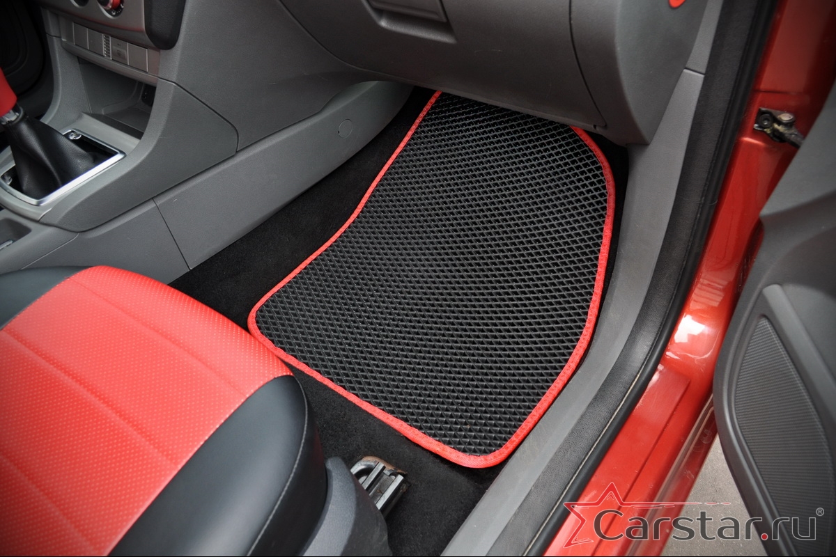 Автомобильные коврики EVA прекрасно подходят для всех существующих марок и моделей авто, здесь вы сможете заказать оптимальный аксессуар любого возможного цвета. По размерам они больше, чем стандартные резиновые коврики, поэтому покрывают максимальную площадь пола в салоне. А двойная система креплений (клипсы и липучки) позволяет надежно зафиксировать коврики в нужном месте.
