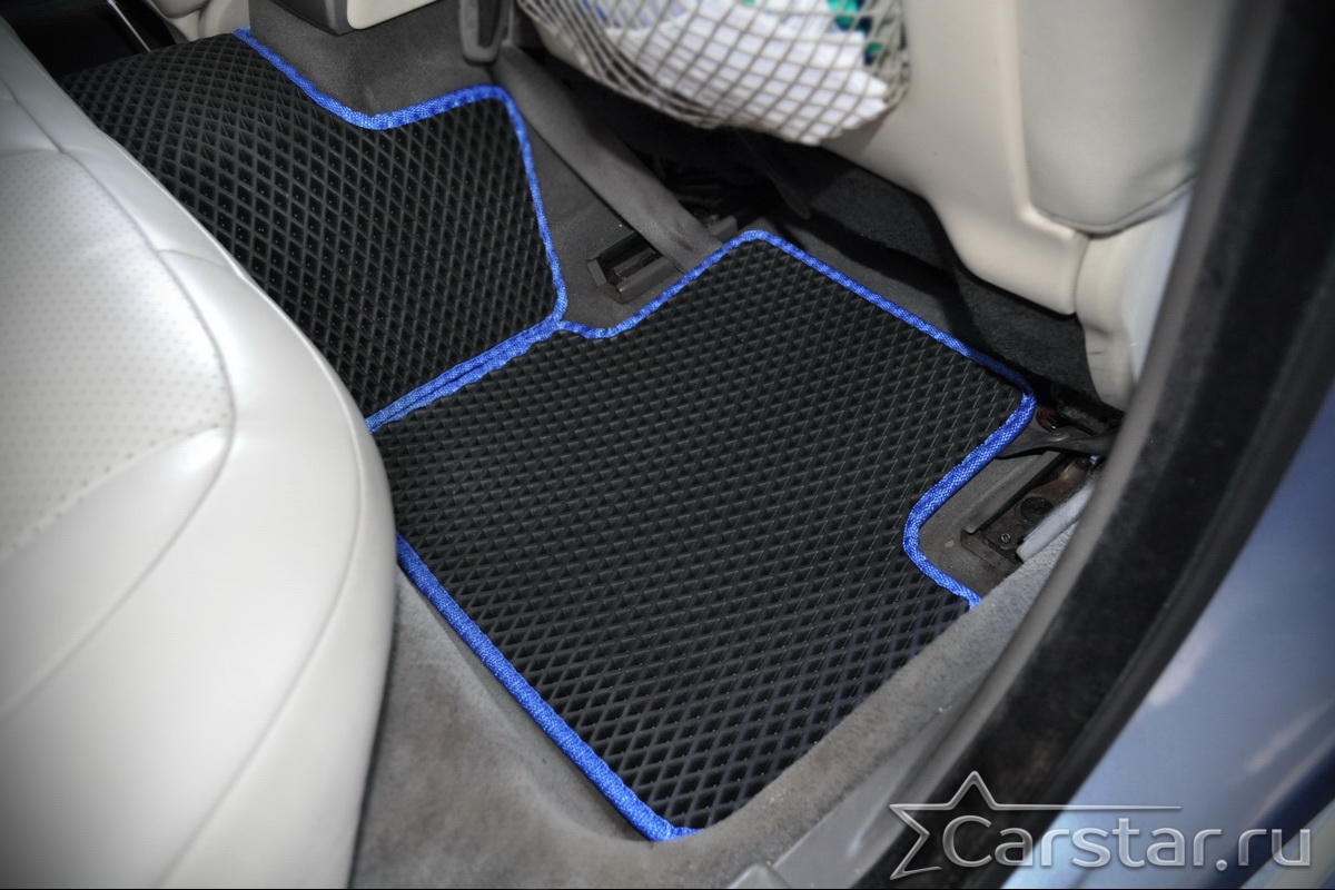 Толщина ковриков EVA составляет 10-12 мм. Глубина ячеек 7-8 мм. Такая толщина ковриков позволяет им служить довольно долго, не протираясь до 3 лет. А благодаря такой глубине ячеек коврик EVA площадью 1 кв.м. способен захватить около 3,5 л жидкости, сохраняя в чистоте вашу обувь и обивку салона.