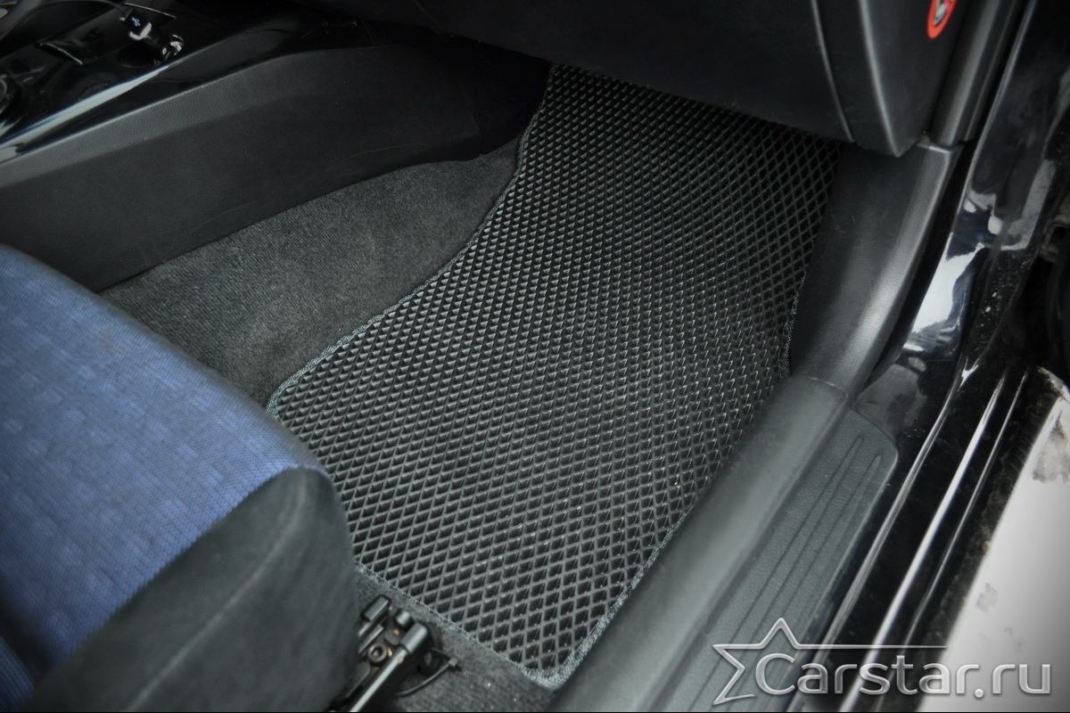 Толщина ковриков EVA составляет 10-12 мм. Глубина ячеек 7-8 мм. Такая толщина ковриков позволяет им служить довольно долго, не протираясь до 3 лет. А благодаря такой глубине ячеек коврик EVA площадью 1 кв.м. способен захватить около 3,5 л жидкости, сохраняя в чистоте вашу обувь и обивку салона.