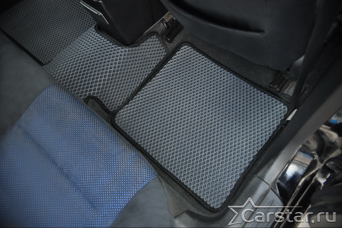 Толщина ковриков EVA составляет 10-12 мм. Глубина ячеек 7-8 мм. Такая толщина ковриков позволяет им служить довольно долго, не протираясь до 3 лет. А благодаря такой глубине ячеек коврик EVA площадью 1 кв.м. способен захватить около 3,5 л жидкости, сохраняя в чистоте вашу обувь и обивку салона.