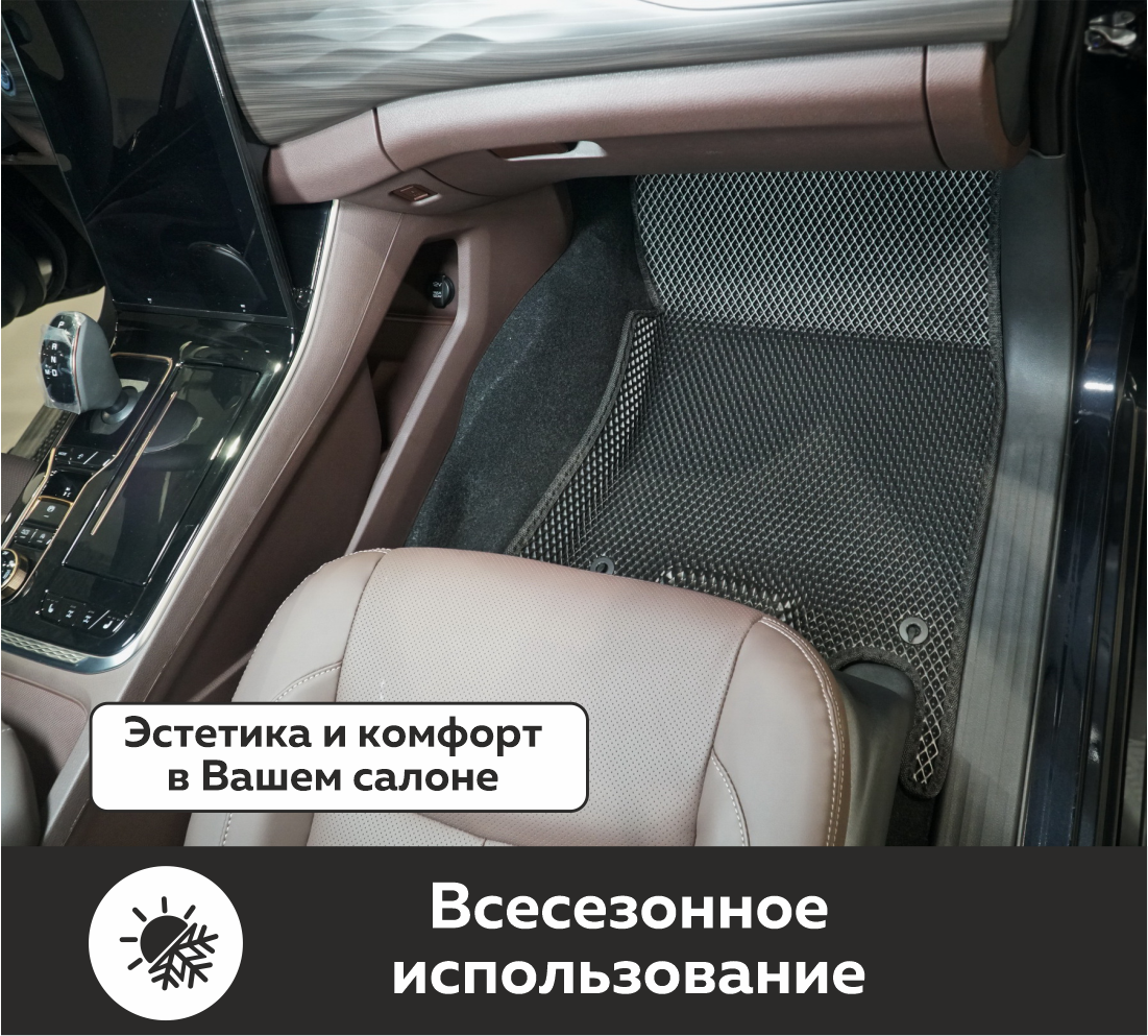 Автомобильные коврики EVA Oting Paladin (2023->) 3D EVA MAX – это долговечные, удобные и универсальные аксессуары, которые помогут надежно защитить салон и багажник вашего авто от пыли, грязи и влаги в любое время года.