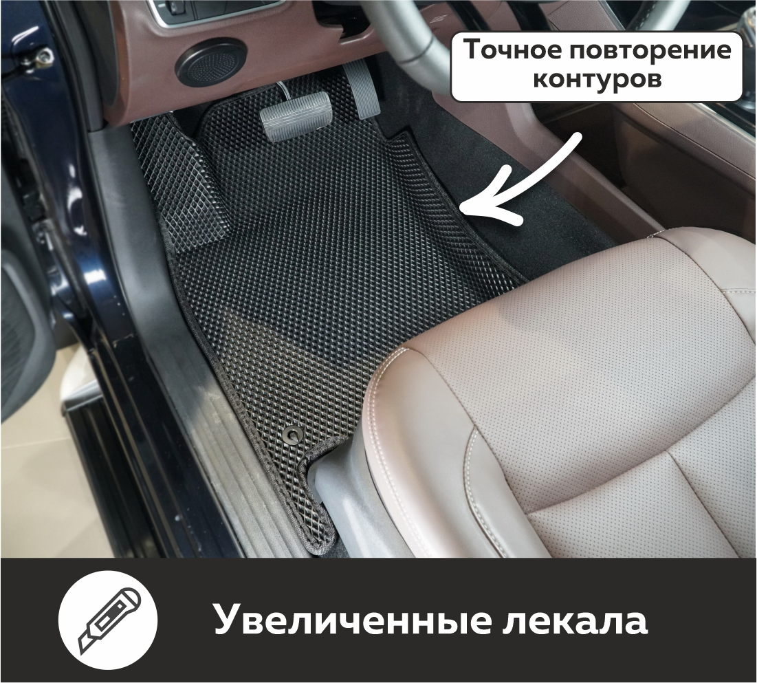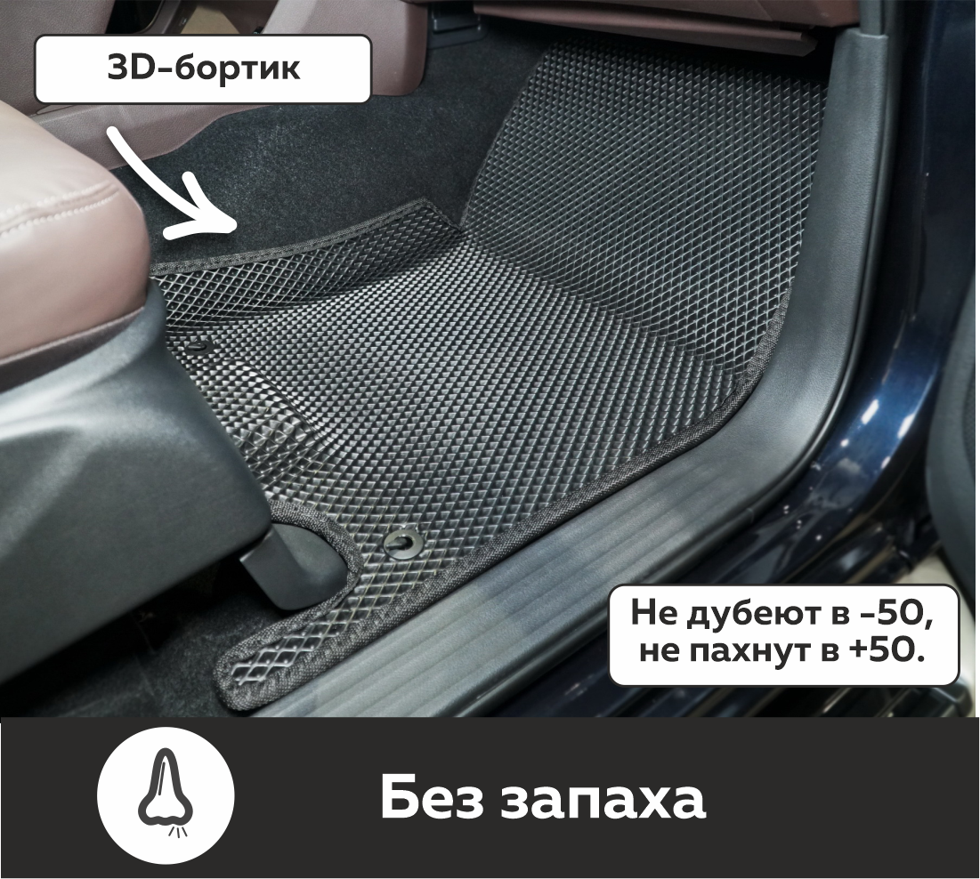 Автоковрики EVA производятся из инновационного экологически чистого материала, обладающего высочайшей износостойкостью, устойчивостью к экстремальным температурам (от +40 С до -40 С) и агрессивным химреагентам. Они в 4 раза легче обычных резиновых аналогов, а чрезвычайно плотная структура обеспечивает им безупречную гидро- и шумоизоляцию!