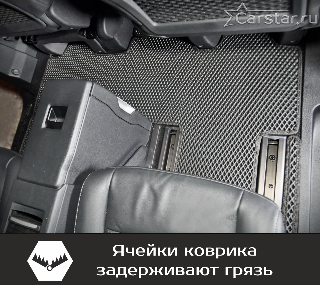 Изделия EVA имеют специальную ячеистую структуру (ячейки глубиной 8 мм), которая эффективно задерживает грязь и воду, оставляя вашу обувь и поверхность обивки салона или багажника абсолютно чистыми. Также эти ячейки очень легко и быстро очищаются без применения специальных инструментов, в том числе, при помощи бесконтактной мойки.