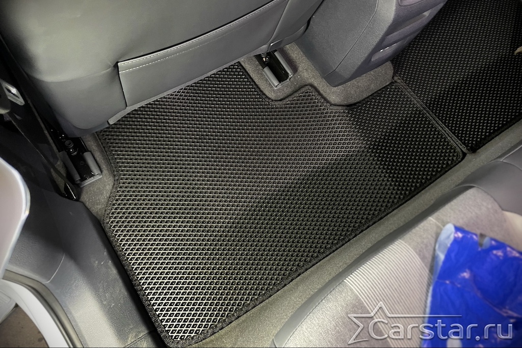 Толщина ковриков EVA составляет 10-12 мм. Глубина ячеек 7-8 мм. Такая толщина ковриков позволяет им служить довольно долго, не протираясь до 3 лет. А благодаря такой глубине ячеек коврик EVA площадью 1 кв.м. способен захватить около 3,5 л жидкости, сохраняя в чистоте вашу обувь и обивку салона.