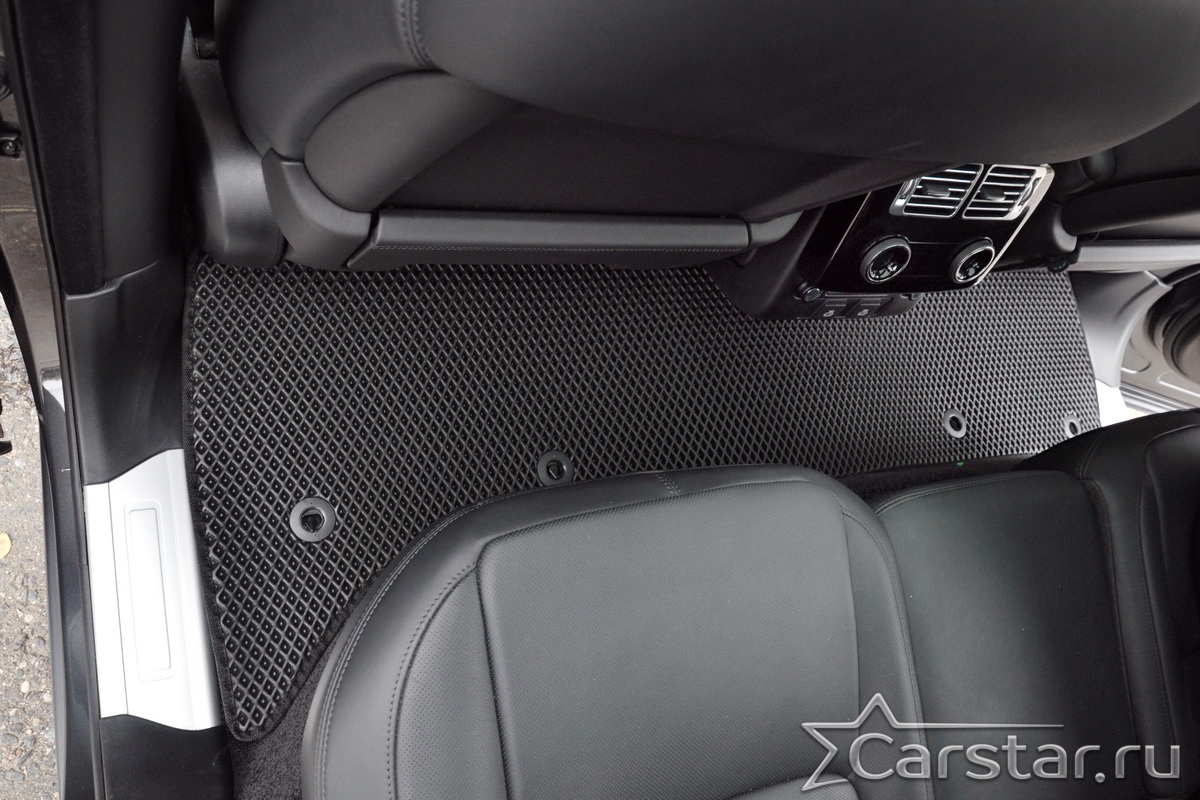 Текстильные коврики надёжно крепятся с помощью оригинальных систем фиксации. Обратная сторона имеет противоскользящее покрытие, что обеспечивает защиту от смещений и безопасность. Максимальное удобство достигается точными лекалами.