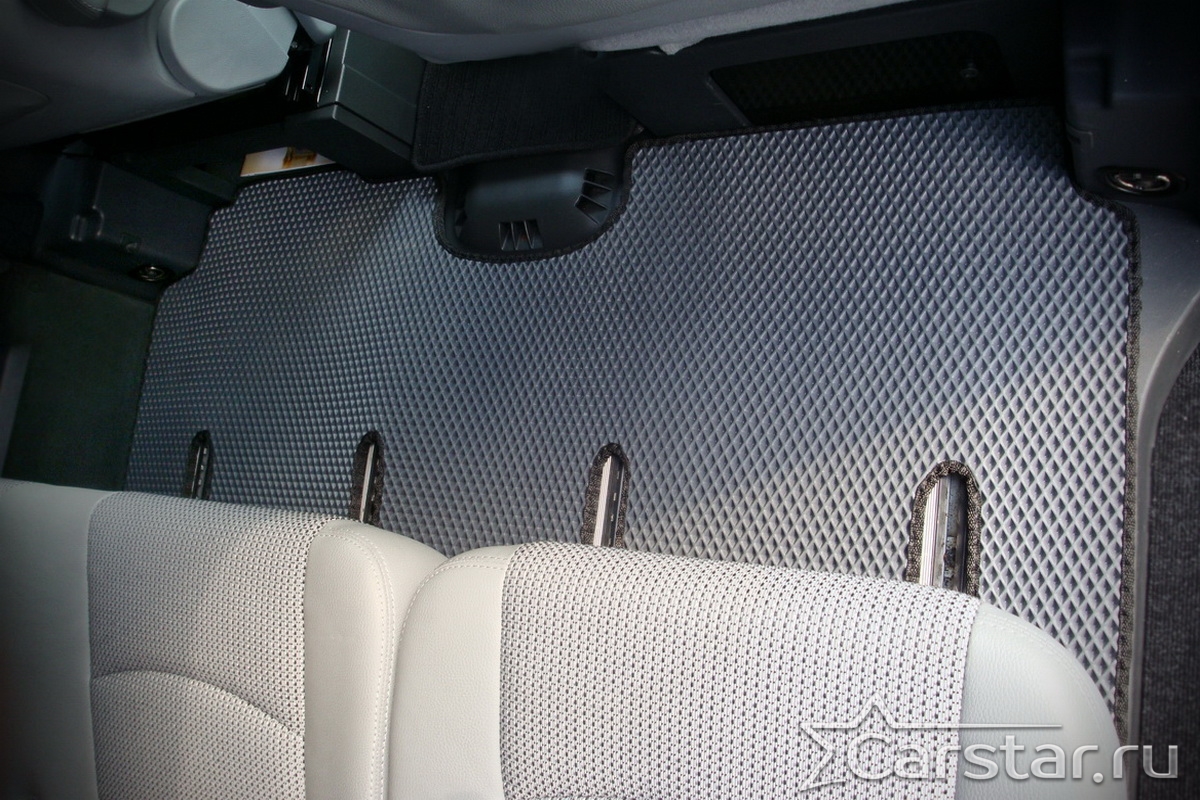 Текстильные коврики надёжно крепятся с помощью оригинальных систем фиксации. Обратная сторона имеет противоскользящее покрытие, что обеспечивает защиту от смещений и безопасность. Максимальное удобство достигается точными лекалами.