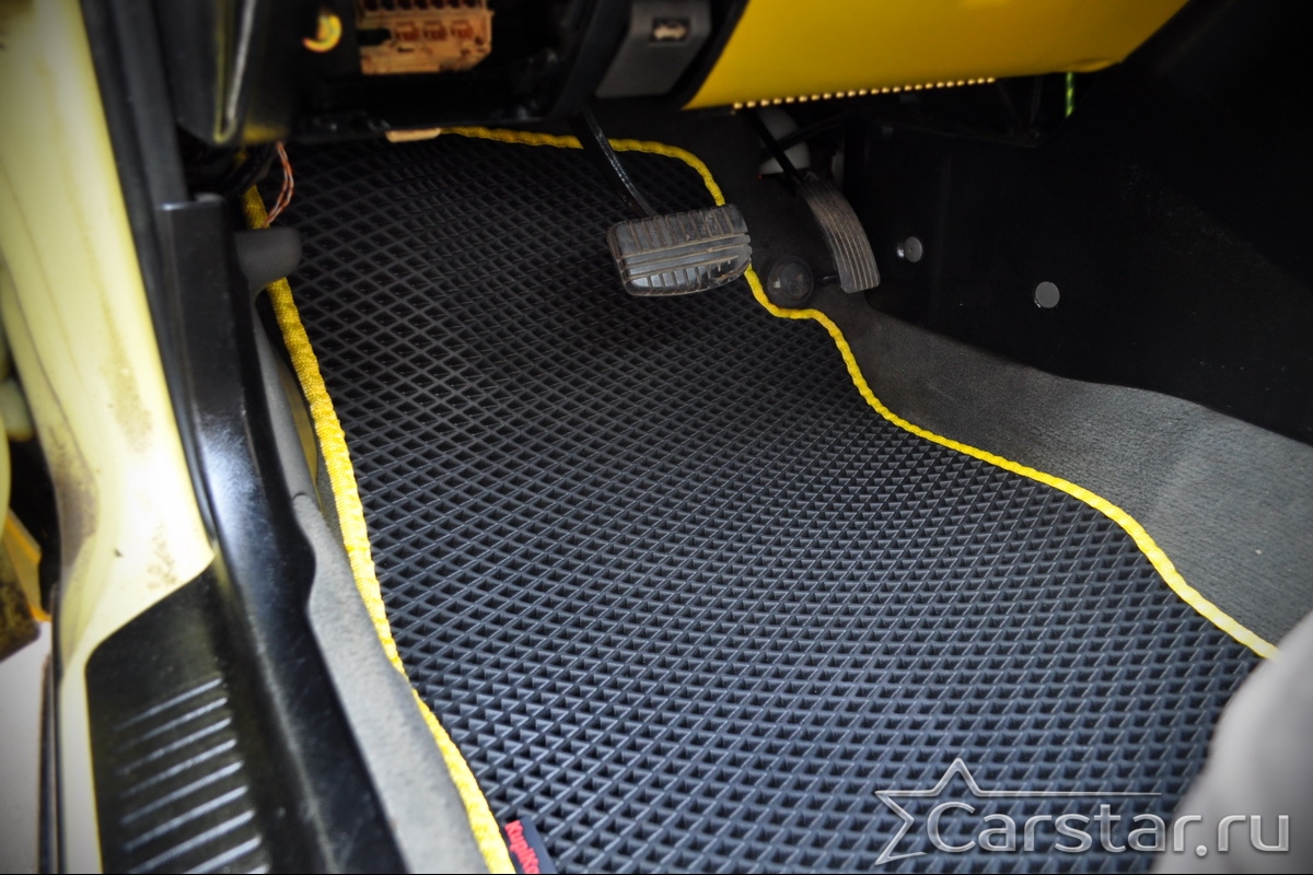 Приятный на ощупь густой плотный ворс текстильных ковриков придаст салону роскошный вид. Широкой выбор цветовой палитры ковролина и окантовки коврика не оставит равнодушным ни одного искушенного автолюбителя.