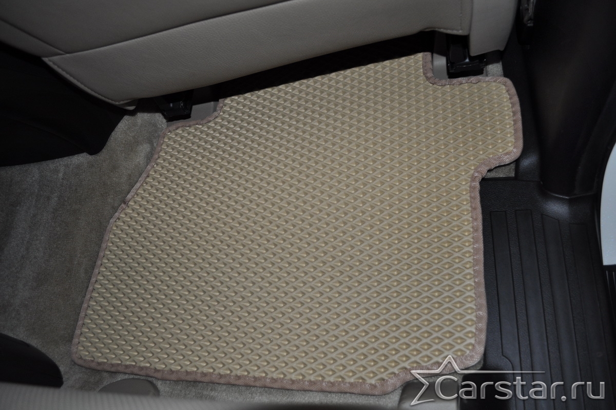 Текстильные коврики надёжно крепятся с помощью оригинальных систем фиксации. Обратная сторона имеет противоскользящее покрытие, что обеспечивает защиту от смещений и безопасность. Максимальное удобство достигается точными лекалами.